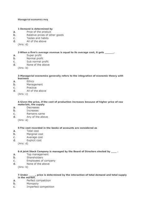 Download Economics Multiple Choice Questions And Answers Reader