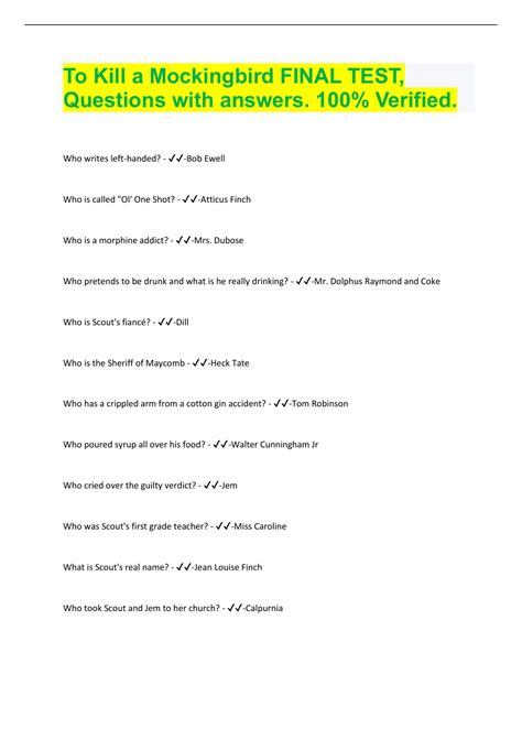 Best answers to to kill a mockingbird exams Read Online EBook Sites No Sign Up - As we know, Read Online EBook is a great way to spend leisure time. Almost every month, there are new Audio Book being released and there are numerous brand new Audio Book as well.