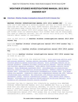 Best Weather Studies Investigations Manual 2013 Answer Key Read EBook Sites No Sign Up - As we know, Read EBook is a great way to spend leisure time. Almost every month, there are new Ebook being released and there are numerous brand new Ebook as well.